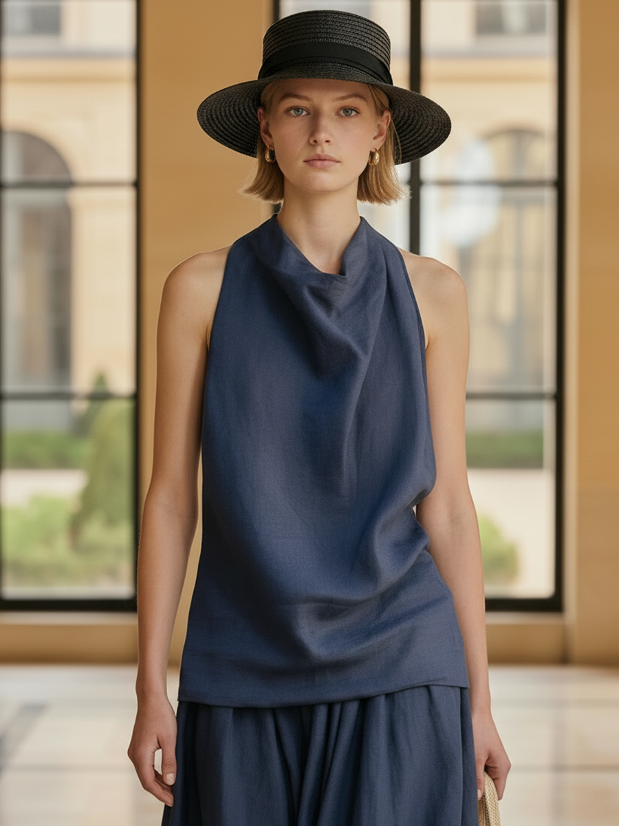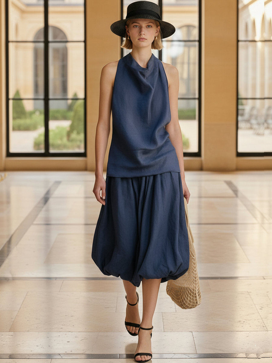 This two-piece set combines a sleeveless tank top and a comfortable elastic‑waist skirt in a soft lyocell, designed with a refined "old money" aesthetic. Clean lines, a minimalist silhouette and a smooth drape give the outfit an understated, polished look that moves effortlessly from daytime to evening.