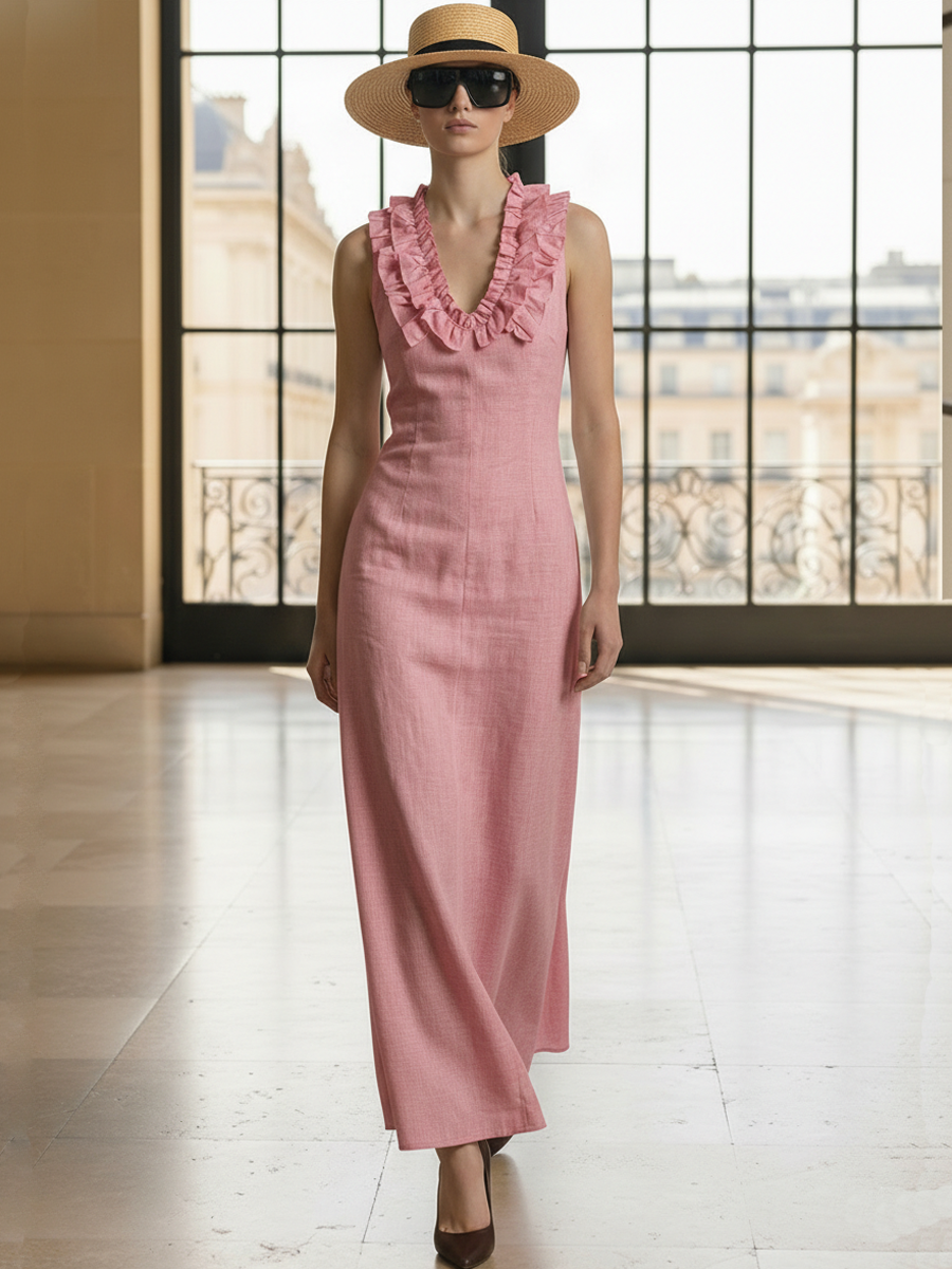 This sleeveless maxi dress blends timeless vintage charm with modern comfort. Made from a breathable cotton-and-linen blend, the dress offers a relaxed, flattering silhouette that drapes naturally for easy all-day wear. Subtle design details emphasize an old-fashioned aesthetic while keeping the piece versatile for everyday styling or casual special occasions.