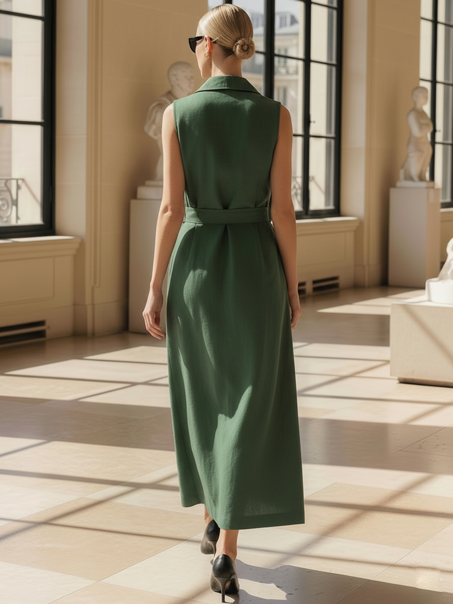 Women's High-end Old-money Style Cotton And Linen Blend Slim-fit Sleeveless Maxi Dress ZMZ2627B9K