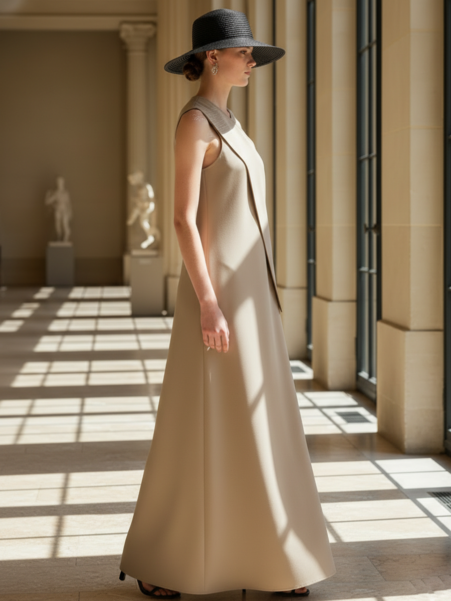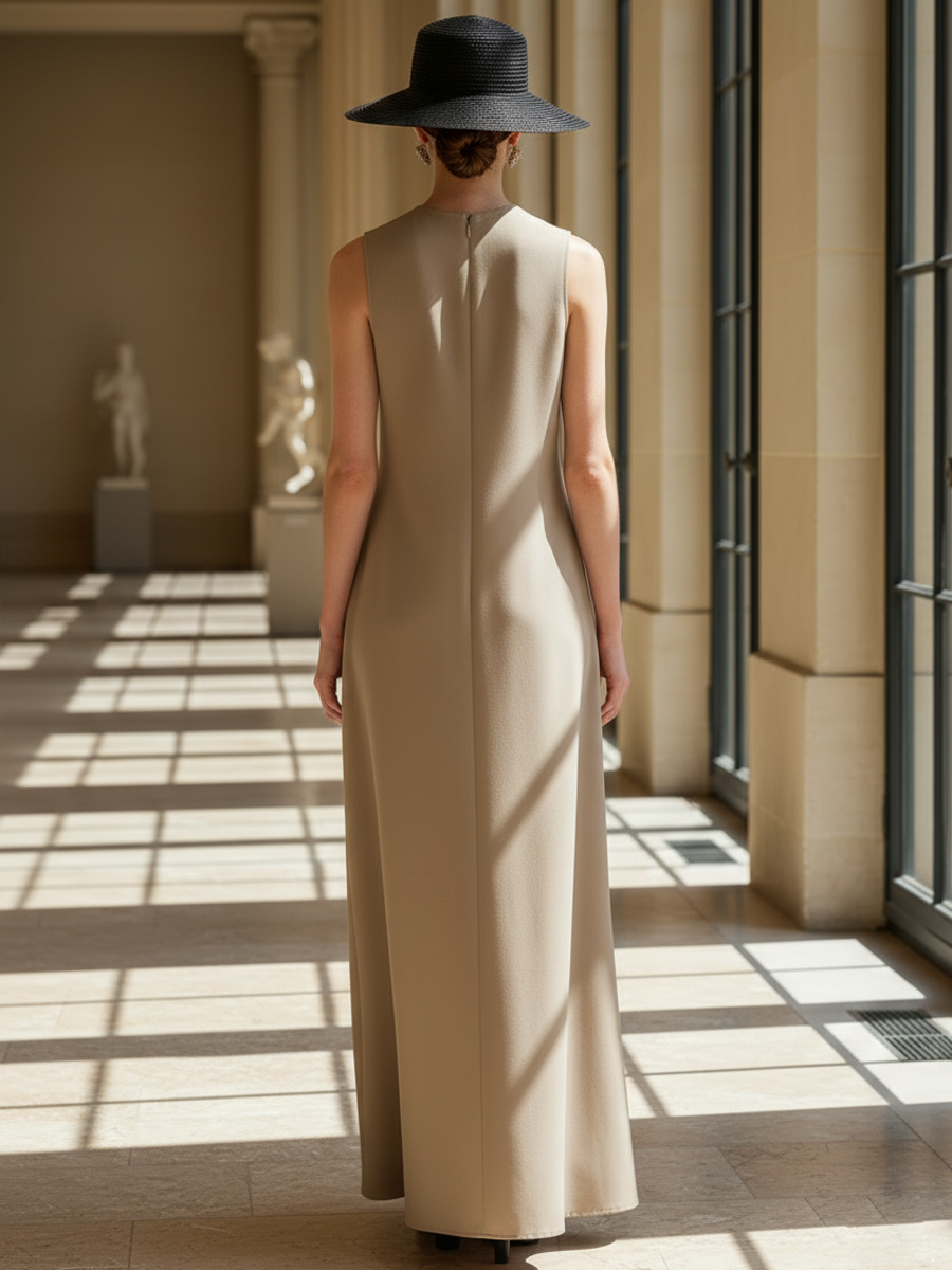 Women's High-end Old-money Style Cotton Blend Sleeveless Loose-fitting Maxi Dress ZMZ1435B5K