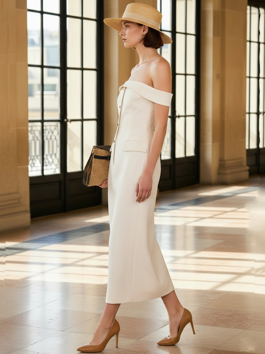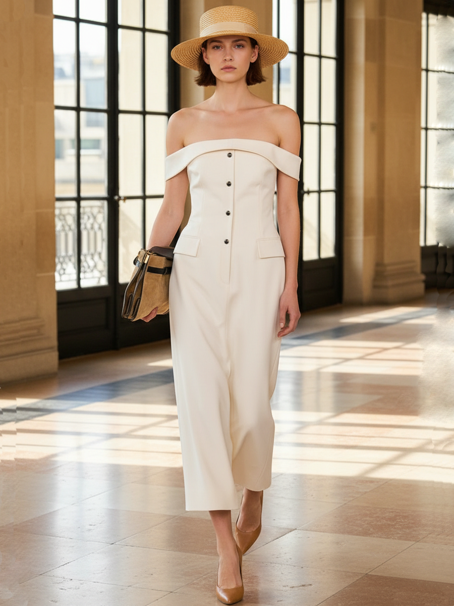 Women's High-end Old-money Style Cotton Blend Strapless Slim-fit Maxi Dress ZMZ1182B4K