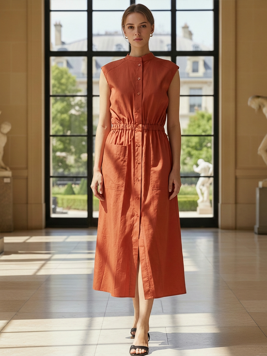 Product Name:Women's Old-fashioned Commuter Cotton Sleeveless Elastic Waist Maxi Dress