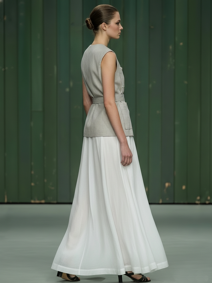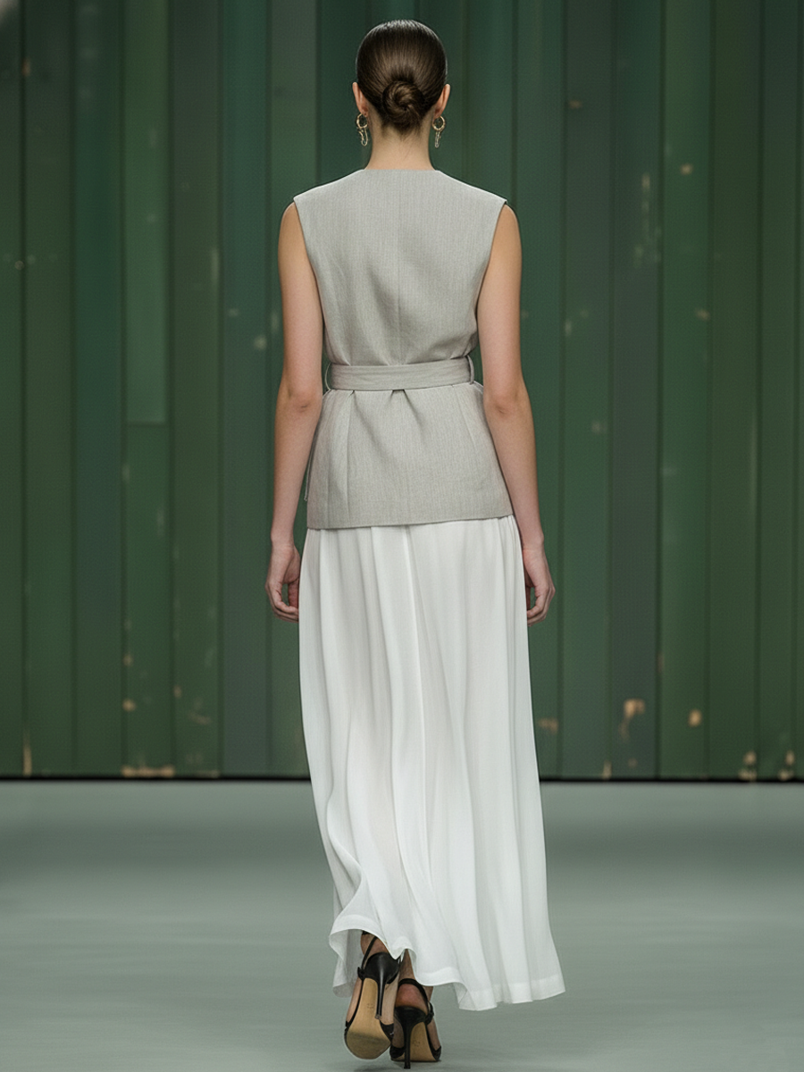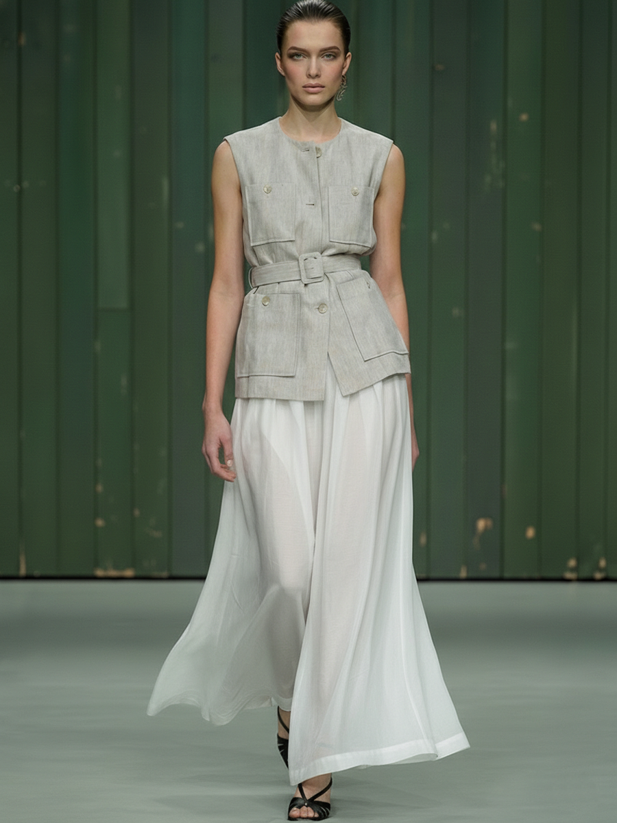 Women's Premium Old Money Style Cotton-linen Blend Vest And Tencel Blend Skirt Set ZMZ0278B1K