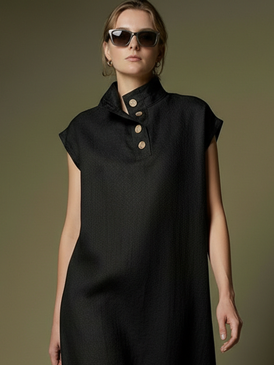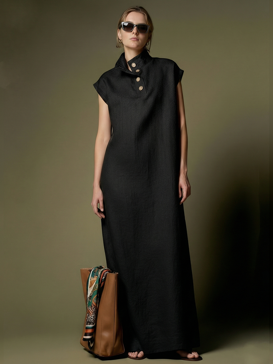 Product Name:Women's Premium Minimalist Henley Neck Herringbone Linen Maxi Dress