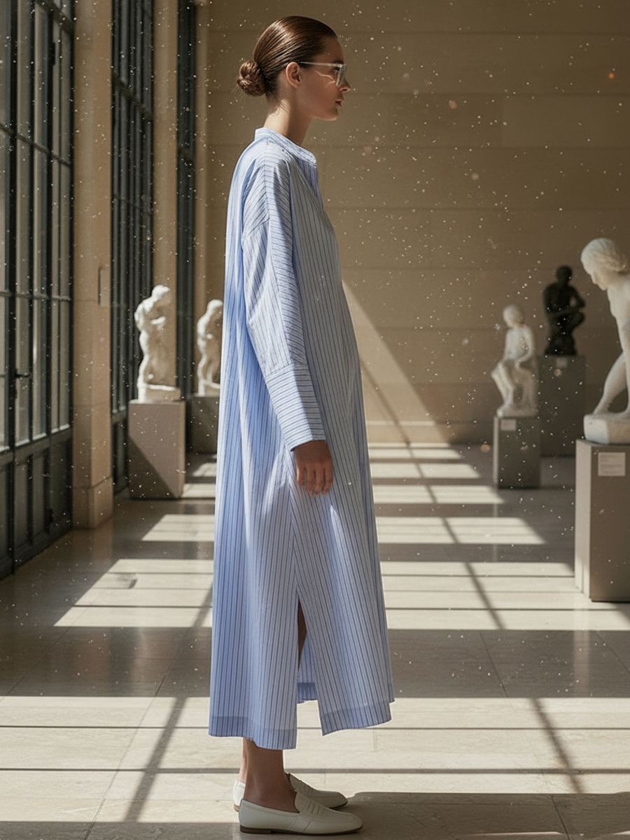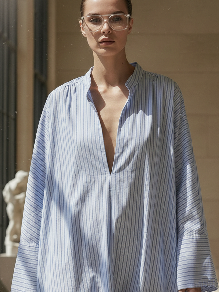 The Women's Casual Cotton Blend Vertical Striped V-neck Maxi Dress is an elegantly designed piece combining comfort and style. Made from a high-quality cotton blend, this maxi dress showcases a classic V-neck design that accentuates the neckline and offers a flattering silhouette. The vertical stripes add a touch of sophistication, elongating the figure for a chic and timeless look. Its breathable fabric makes it perfect for both indoor and outdoor occasions.