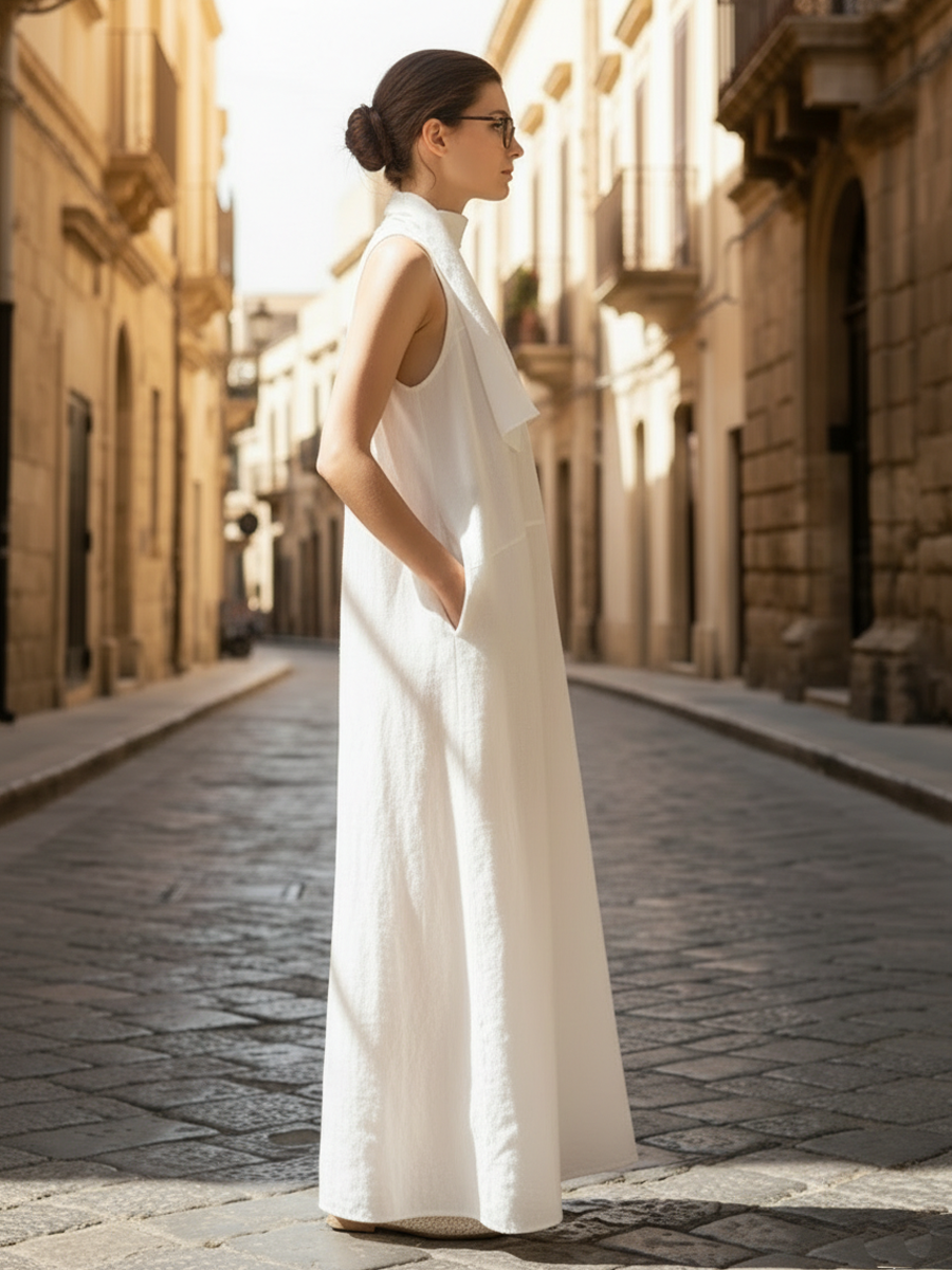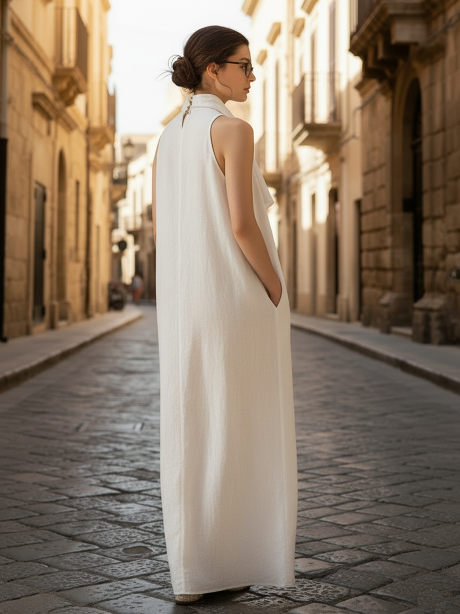 Women's Italian-style Romantic Cotton And Linen Blend Sleeveless Maxi Dress ZMZ2607A7K