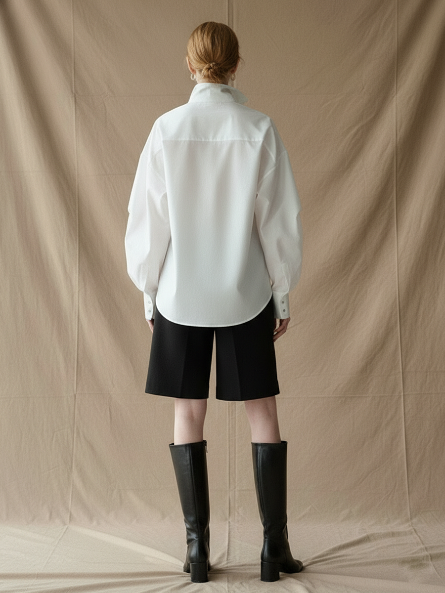 Product Name:Women's Commuter Style Cotton Shirt And Shorts Set
