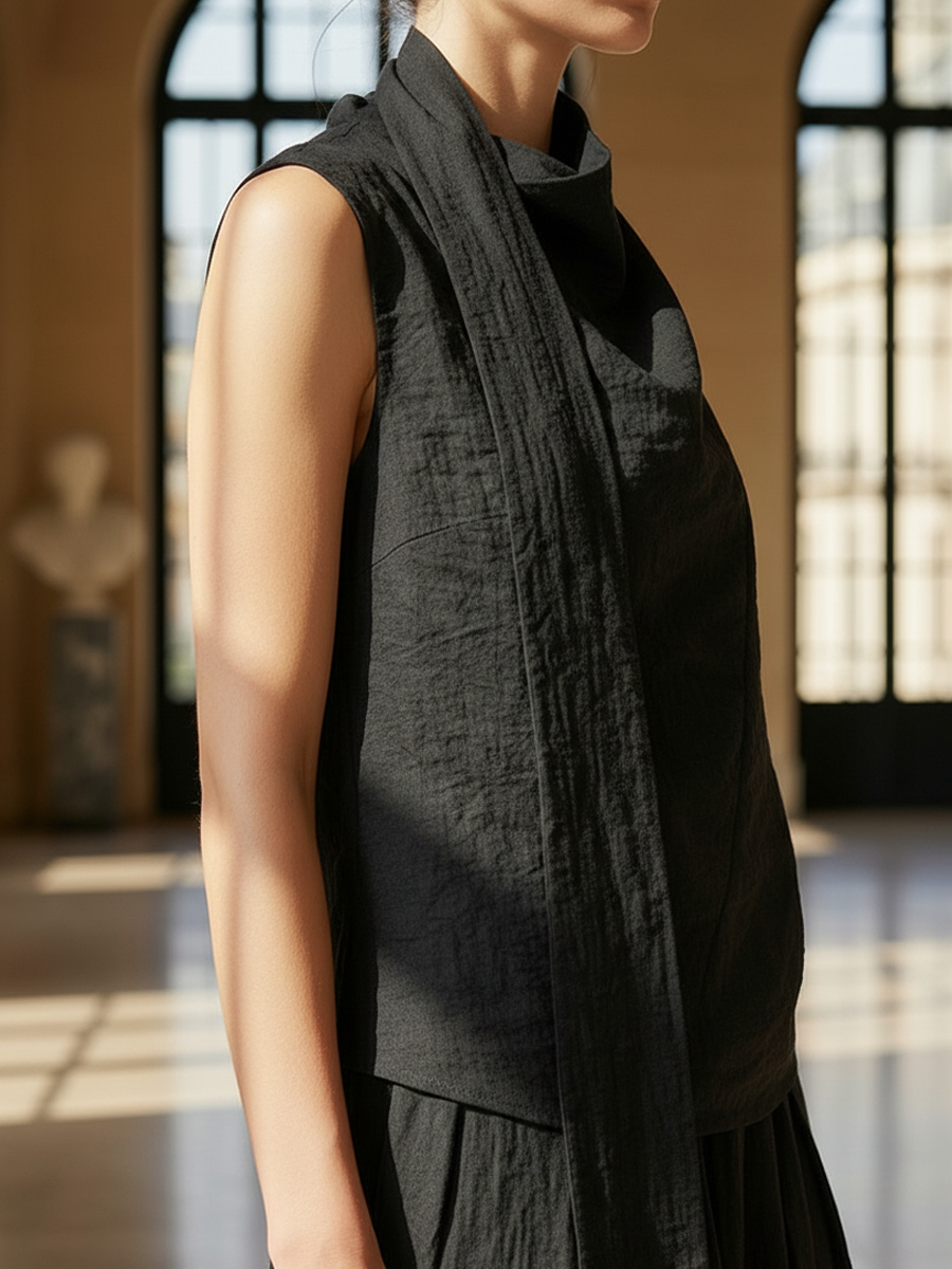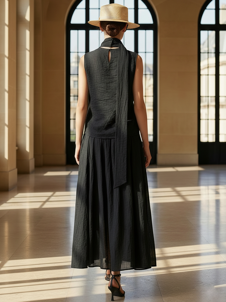 Women's High-end Old-money Style Lyocell Blend Sleeveless Top And Elastic Waist Skirt Set ZMZ2576B5K