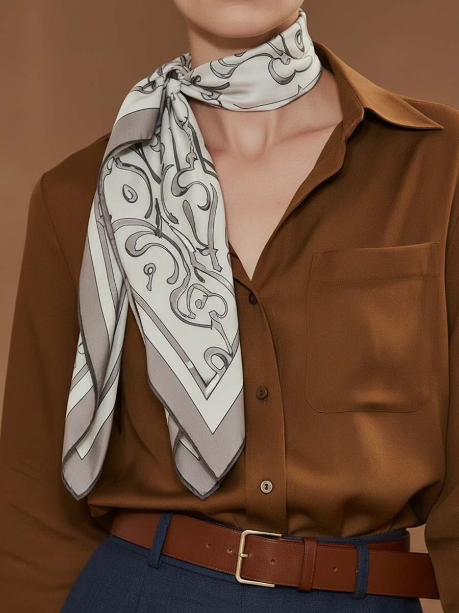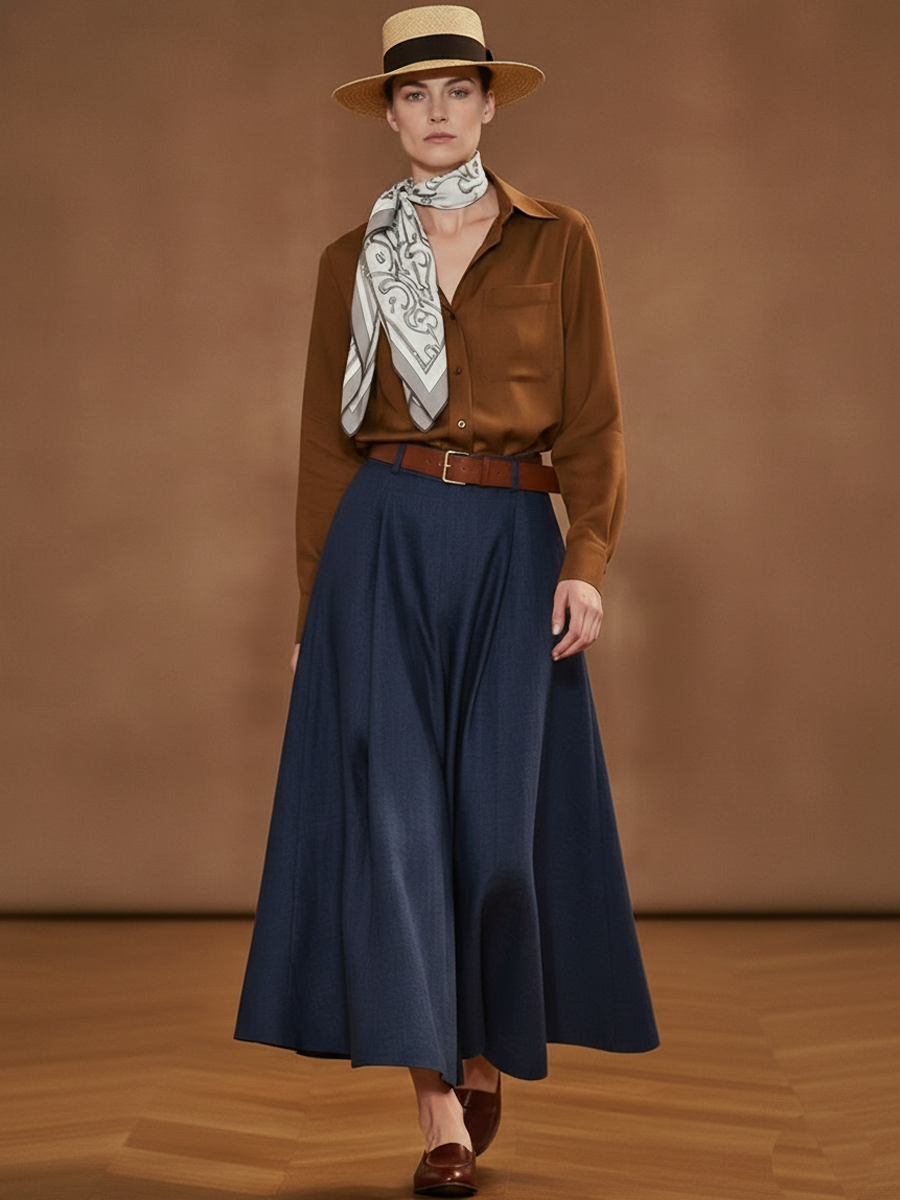 Women's American Retro Style Tencel Blend Shirt And Skirt Set (belt And Scarf Not Included) ZMZ2811A2K