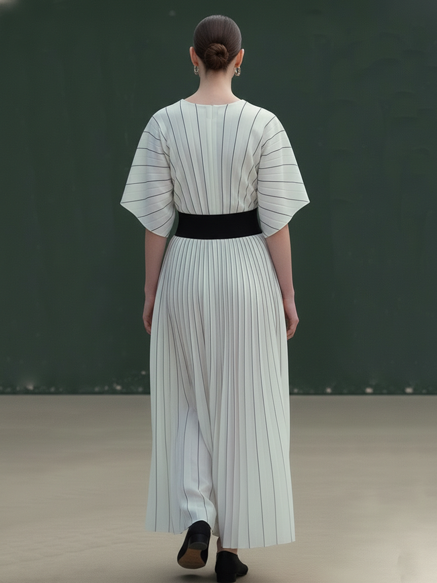Product Name:Women's Minimalist Commuter Style Silk-cotton Blend Elastic Waist Maxi Dress