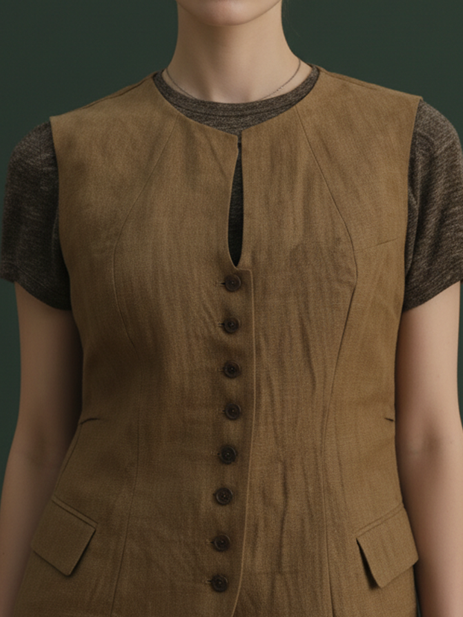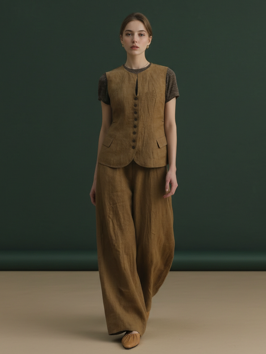 Product Name:Women's Premium Old Money Style Tencel Linen Blend Vest And Trousers Set (including T-shirt)