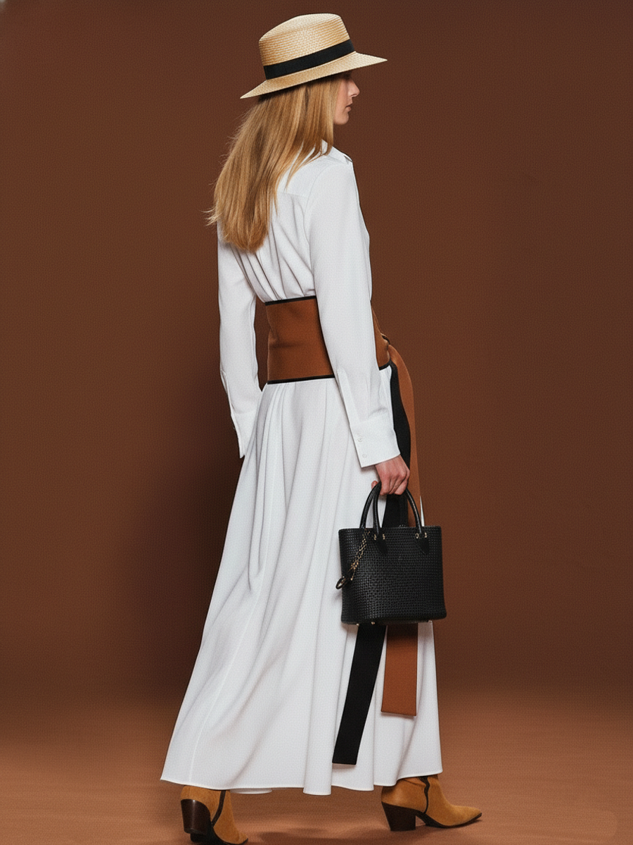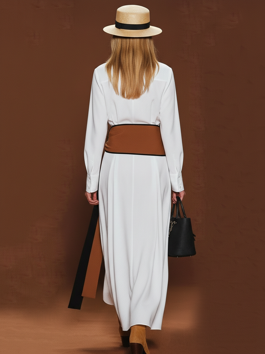 Product Name:Women's American Retro Style Pure Cotton Long-sleeved Maxi Dress (with Belt)