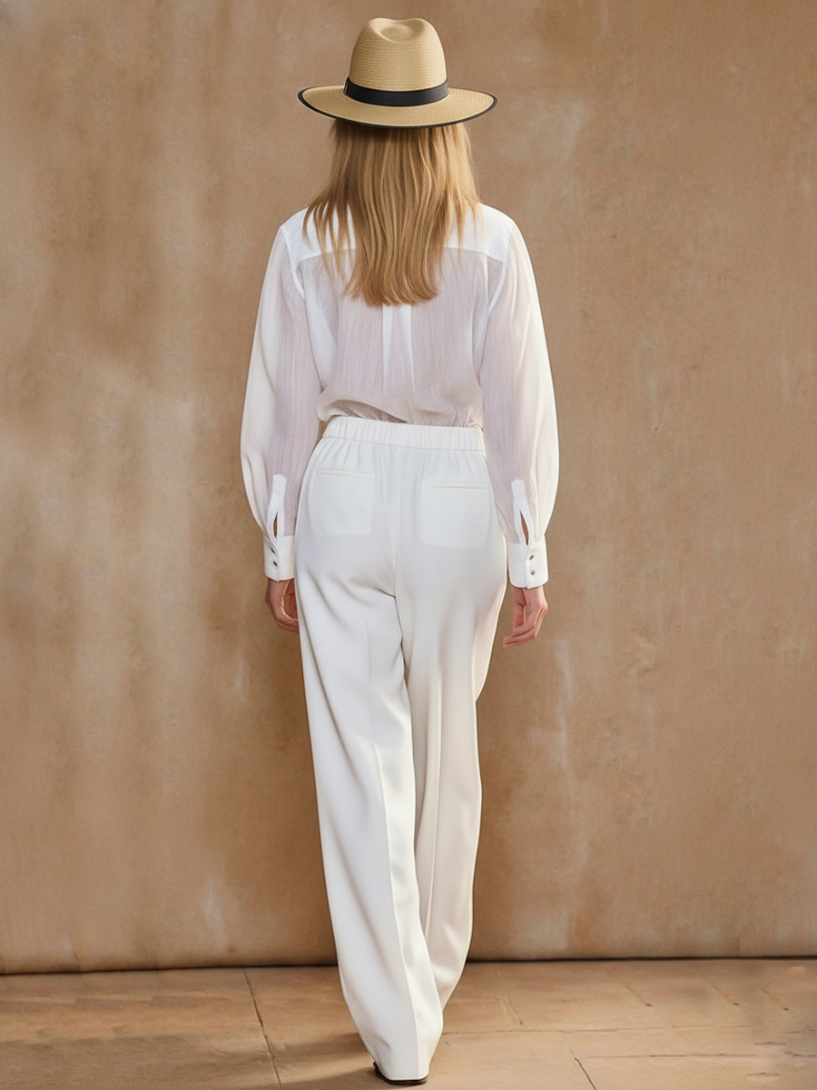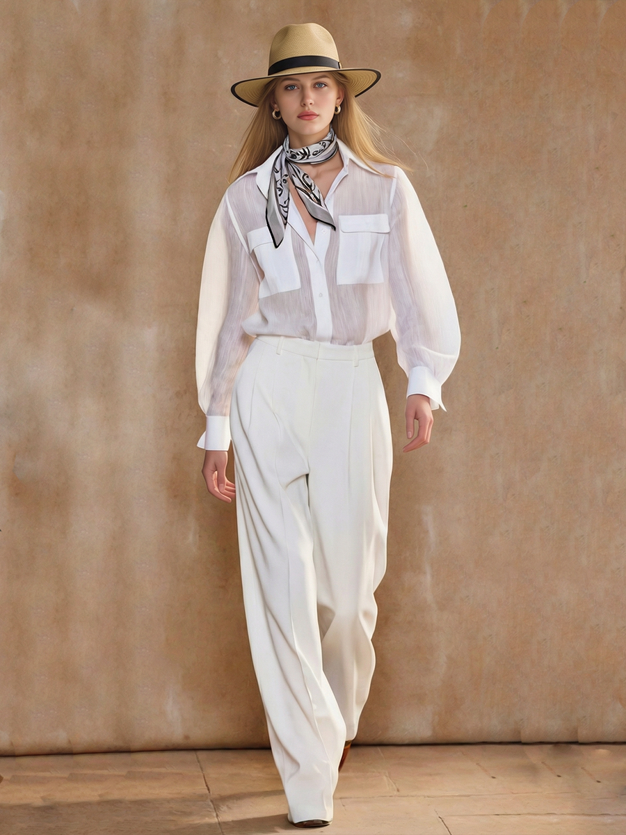 Product Name:Women’s American Retro Style Tencel Blend Shirt And Pants Set (scarf not included)
