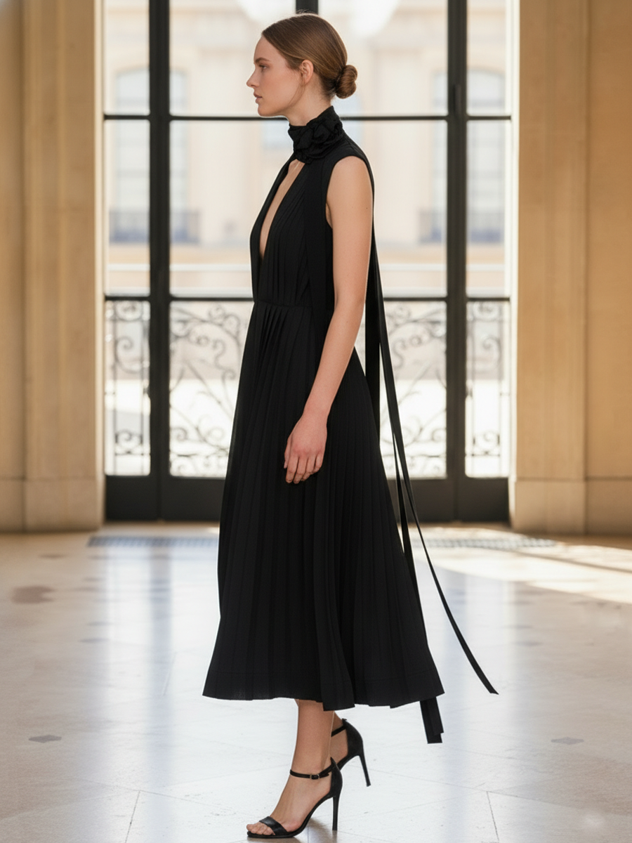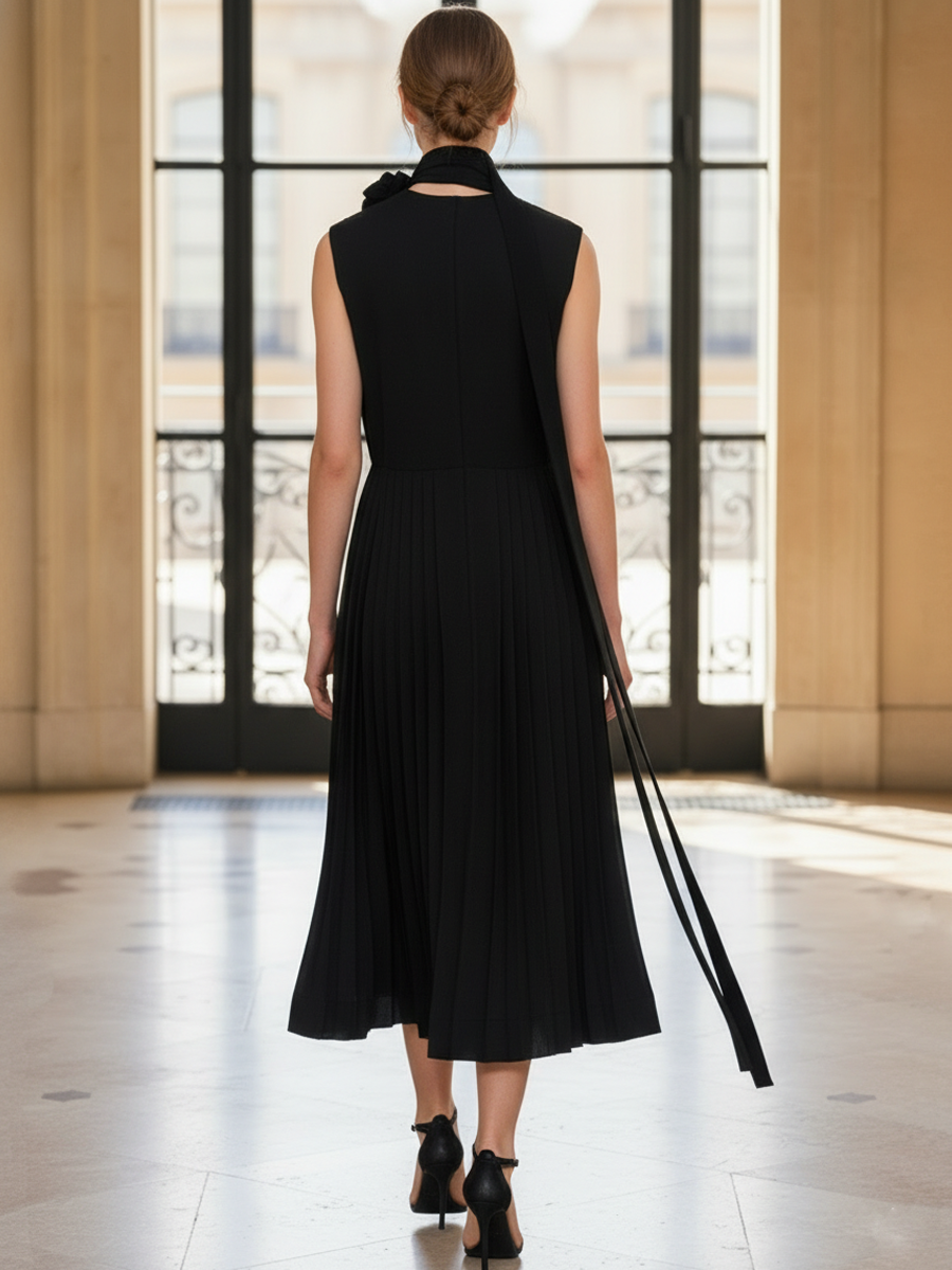 Women's Elegant And Sophisticated Pure Cotton Sleeveless Midi Dress (including Neck Embellishment) ZMZ2516B6K