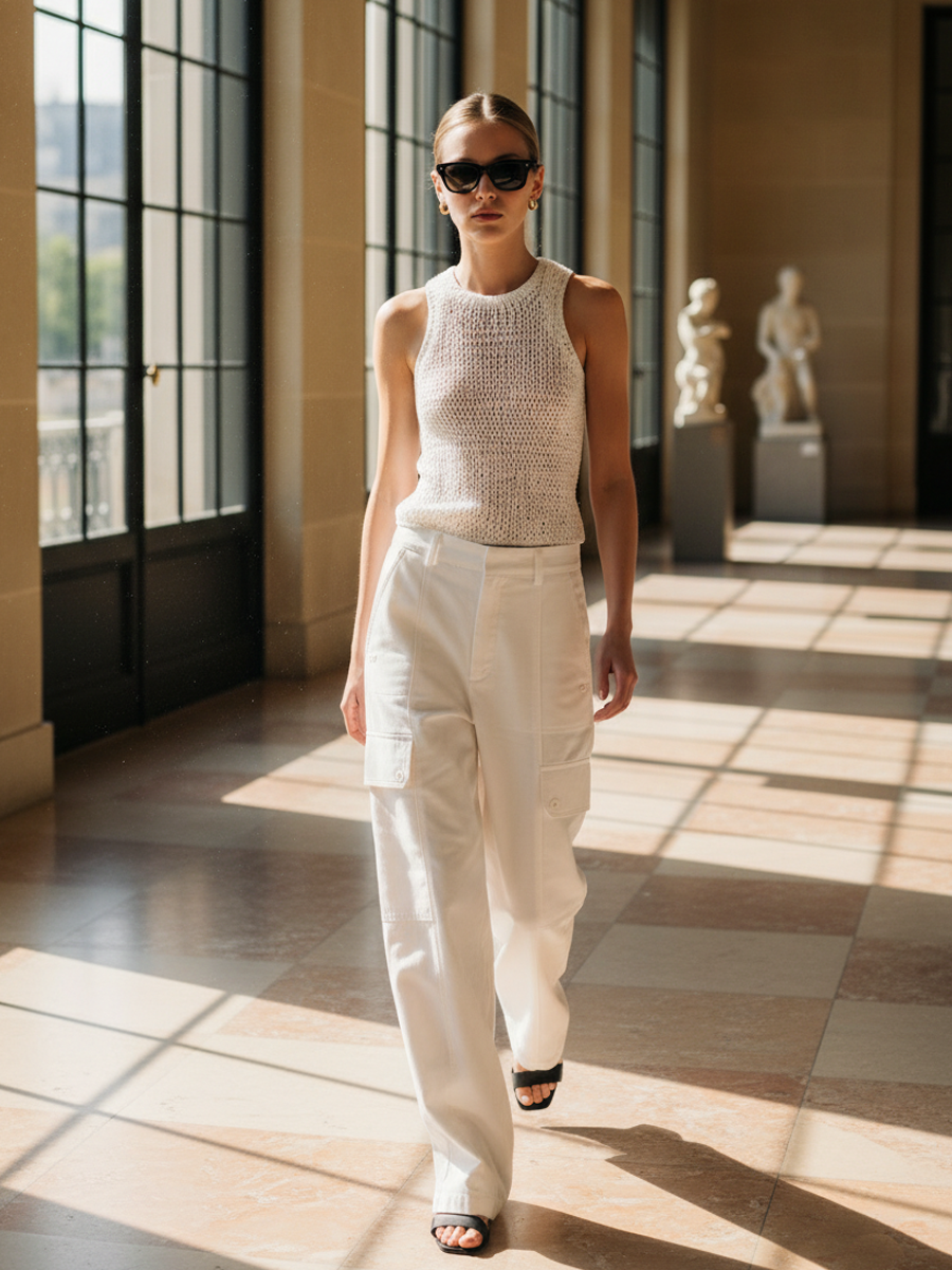 Women's Elegant Knitted Vest And Cotton Trousers Set ZMZ0471B2K