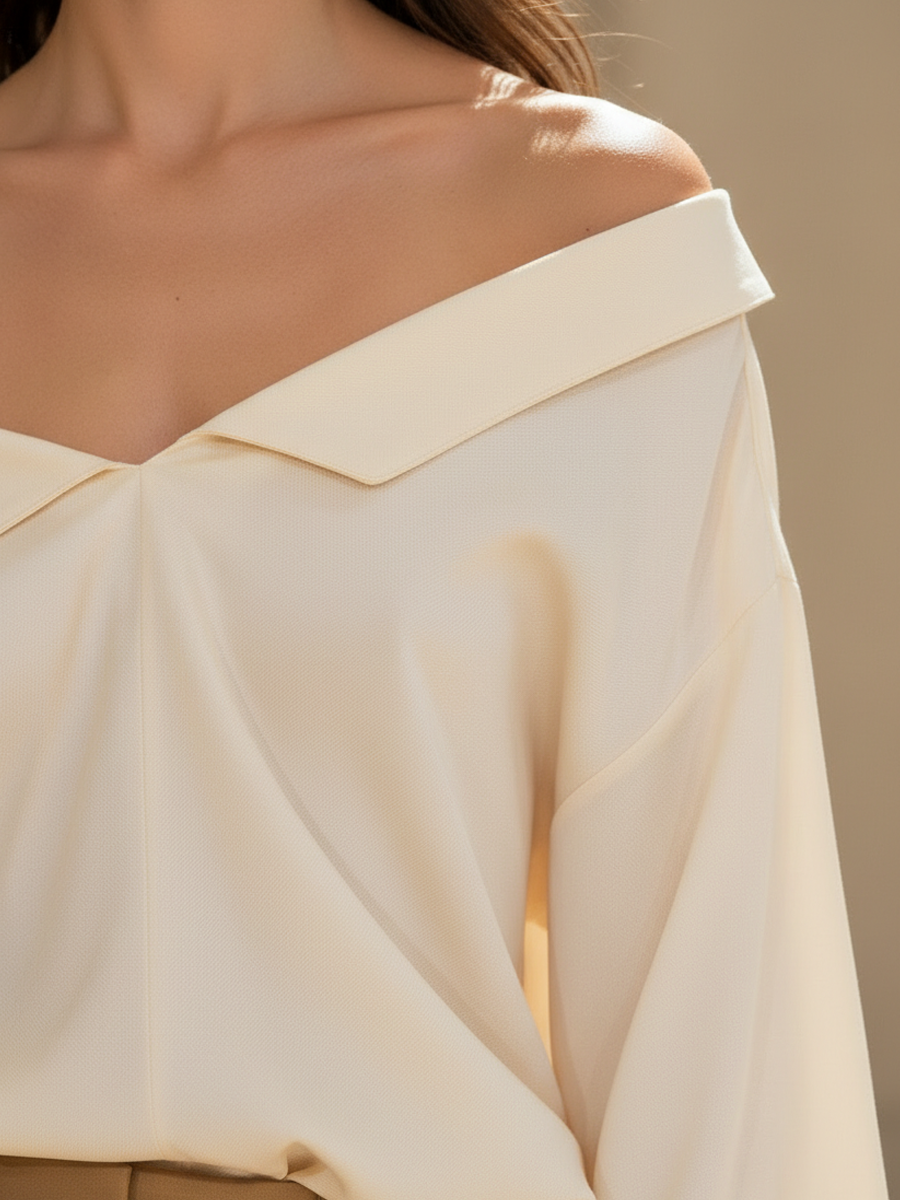 Women's Fashionable Casual Pure Cotton Off-Shoulder Long-Sleeve Shirt And Shorts Set ZMZ1491B3K