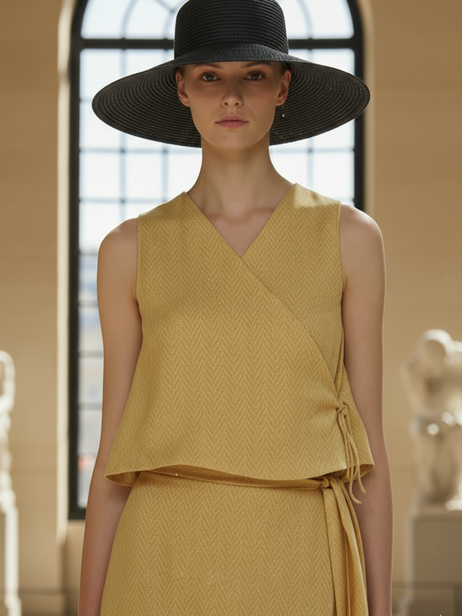 Women's French Elegant Linen Tencel Blend Sleeveless Vest And Elastic Waist Skirt Set ZMZ1443B0K