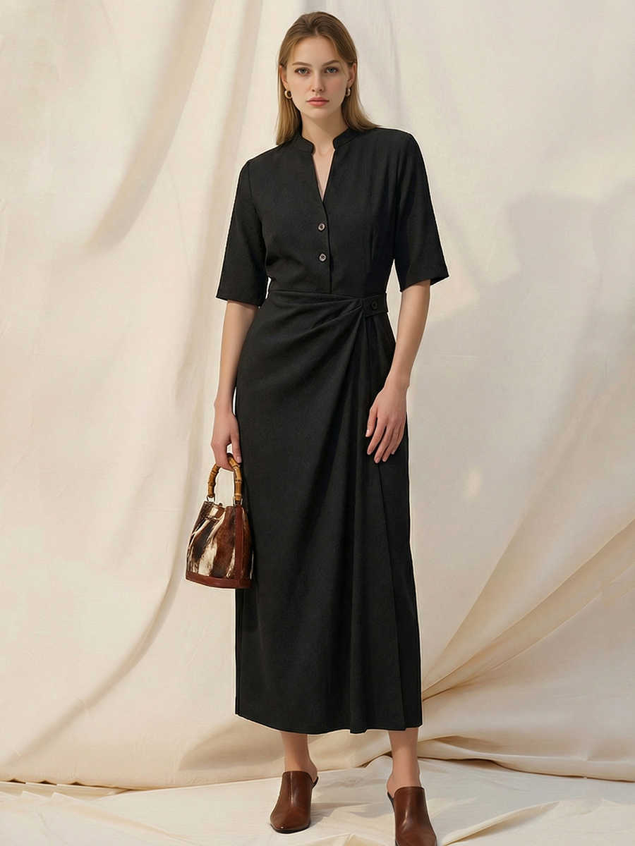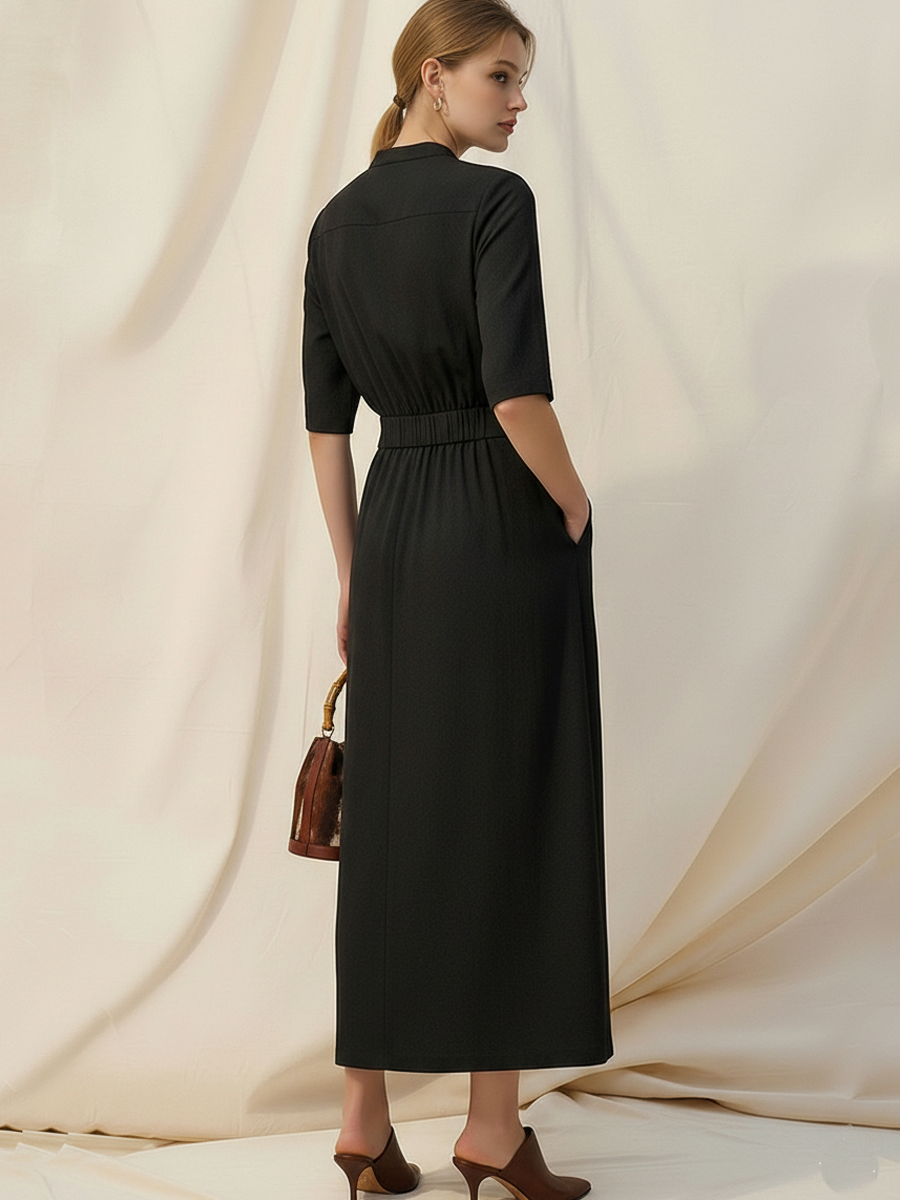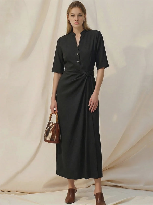 Women's French-style Elegant Tencel Blend Short-sleeved Maxi Dress ZMZ2656A2K