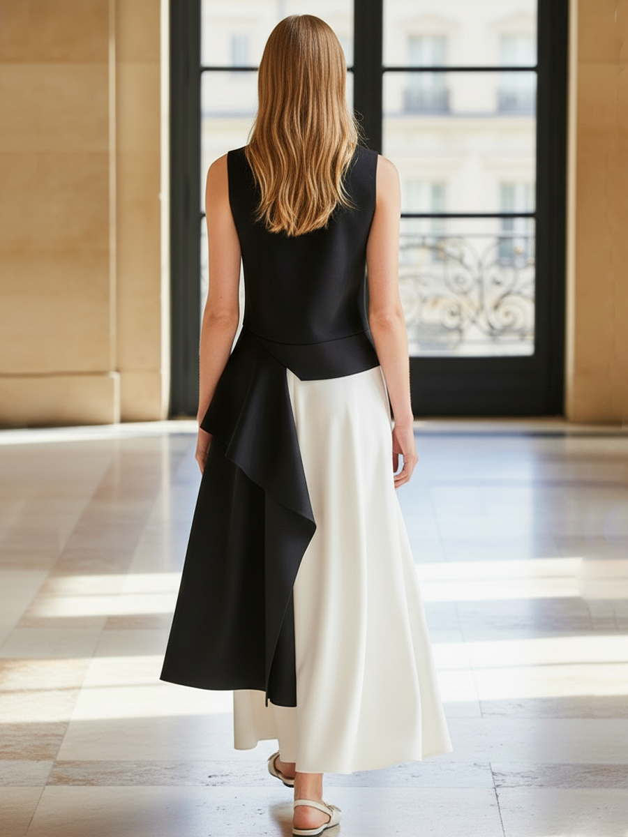 This refined two-piece set combines classic “old-money” elegance with modern comfort. Crafted from pure cotton, the ensemble features a tailored vest and a matching skirt designed for a polished, timeless silhouette. Clean lines, understated details and premium workmanship make this set ideal for elevated daytime looks or refined evening events.