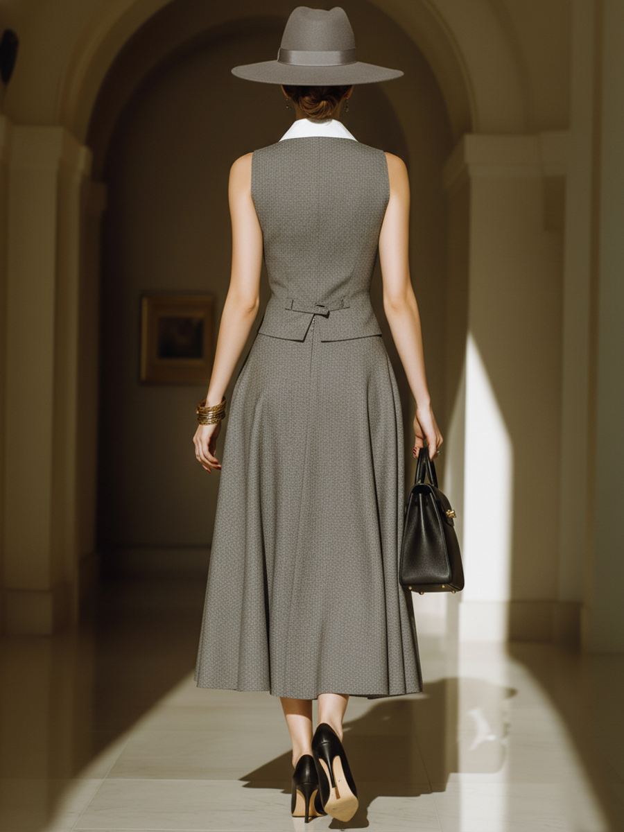 Women's Old Money Style Commuter-Style Patchwork Neck Sleeveless Vest And Skirt Set