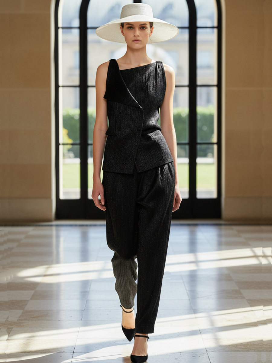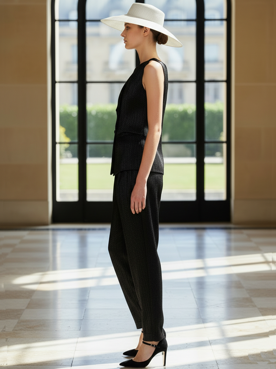 Women's Premium Commuter Bark-textured Cotton Blend Vest And Trousers Set ZMZ1491B2K