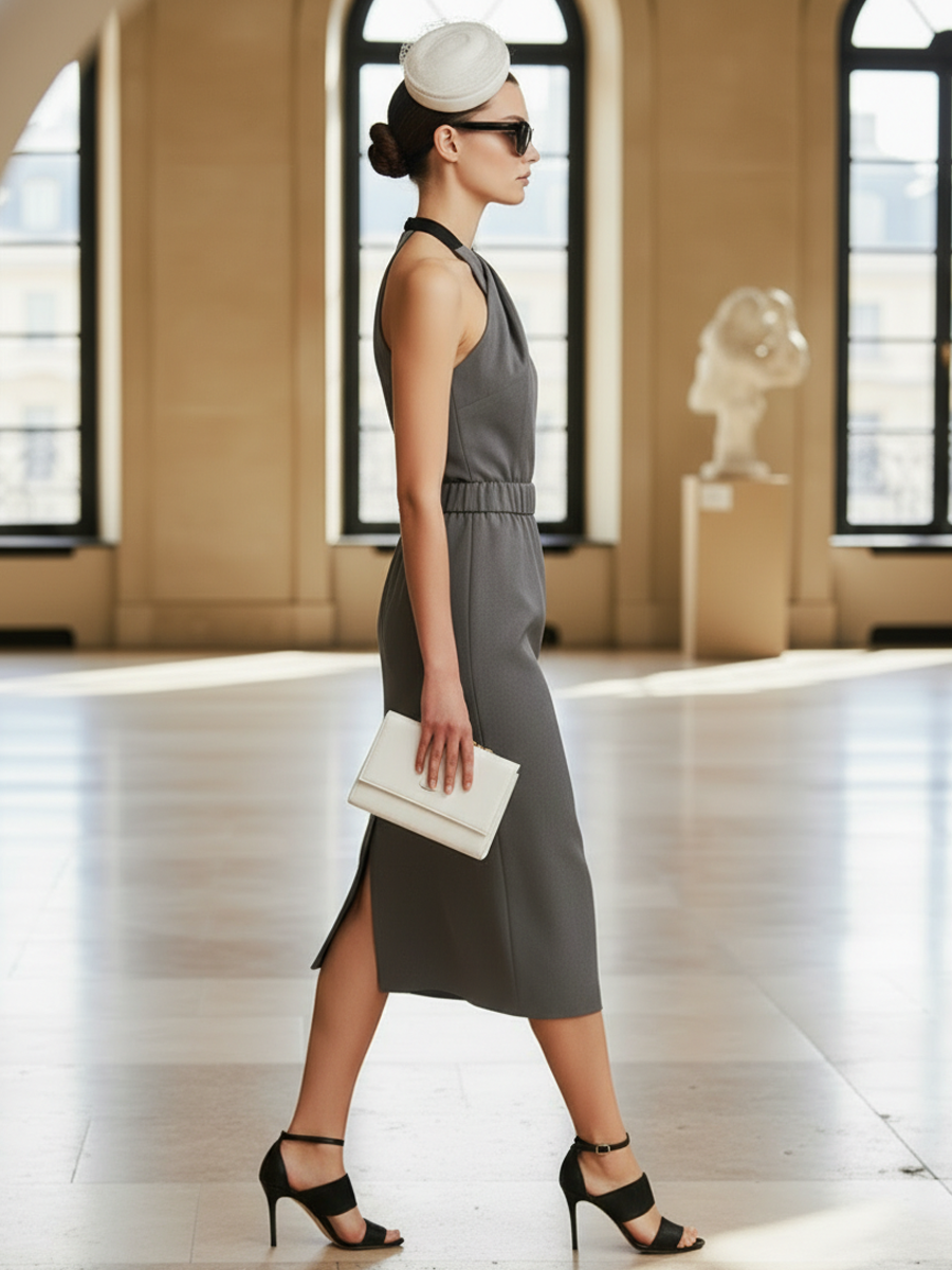 A refined, minimalist midi dress designed for everyday elegance. Cut from a soft cotton-blend fabric with a touch of stretch, this sleeveless silhouette follows the natural shape of the body for a slim, flattering fit. Clean lines and understated detailing make it a versatile wardrobe staple that transitions effortlessly from daytime to evening.