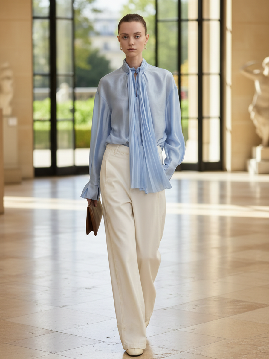 Product Name:Women's Premium Minimalist Tencel Blend Shirt And Cotton Trousers Set